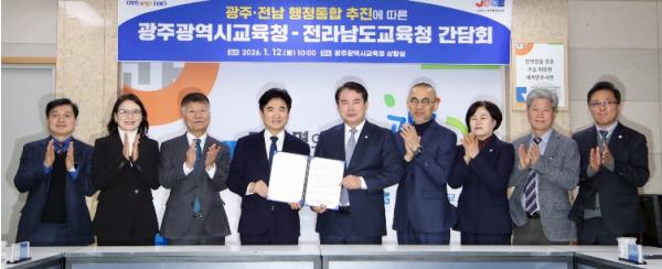 [중앙뉴스라인, 김민수기자] 전라남도교육청과 광주광역시교육청이 12일 광주·전남 행정 통합에 찬성하고 협력을 다짐하는 공동발표문을 채택했다.