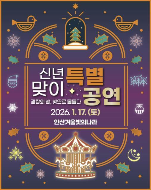 특별공연에는 인기 뮤지션 지올팍과 시온이 출연해 안산의 환한 겨울밤을 더욱 따뜻하게 물들이며, 시민들과 새해의 시작을 함께한다.