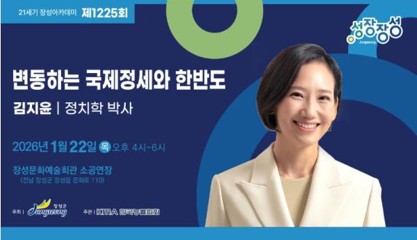[중앙뉴스라인, 김민수기자] 장성군이 22일 열리는 제1225회 장성아카데미에 김지윤 정치학 박사를 초빙했다.