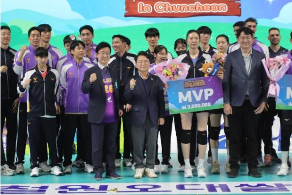 특히 V-리그 구단이 없는 비연고 지역에서 처음으로 열린 V-리그 올스타전은 개최 전부터 전국적인 관심을 모았다. 예매 시작 1분 만에 전석이 매진되며 흥행을 예고했고 경기 당일에는 서울과 부산, 광주 등 전국 각지에서 배구 팬들이 춘천을 찾았다. 이날 육동한 춘천시장도 경기장을 찾아 개회 세리머니와 시구를 통해 춘천시민들과 배구팬들과 소통을 이어갔다.