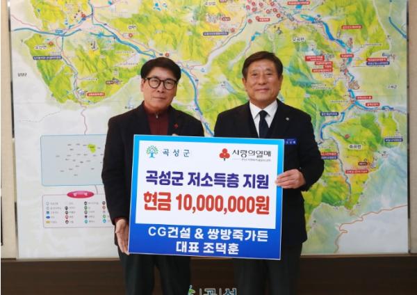 [중앙뉴스라인, 김민수기자] 곡성군이 입면 CG건설 및 쌍방죽가든 조덕훈 대표가 군 지정 전남사회복지공동모금회에 1천만 원을 기부했다고 30일 전했다.