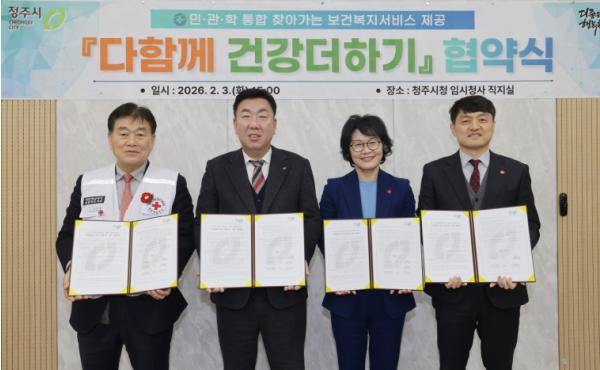 [중앙뉴스라인, 한소연기자] 청주시는 고령화 심화에 따른 의료 사각지대를 해소하고 의료취약지 주민에게 ‘찾아가는 보건복지서비스’를 제공하기 위해 3일 대한적십자사 충북지사, 국민건강보험공단 청주동부지사, 청주서부지사와 업무협약을 체결했다.