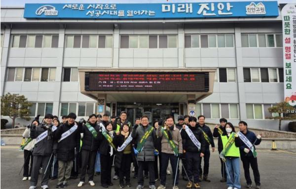 [중앙뉴스라인, 양병남기자] 진안군은 설 명절을 앞두고 4일, 군청 환경과와 진안읍 행정복지센터 직원 60여 명이 참여한 가운데 진안읍 시가지 일원에서 환경정화활동과 생활쓰레기 저녁시간 배출 캠페인을 추진했다.