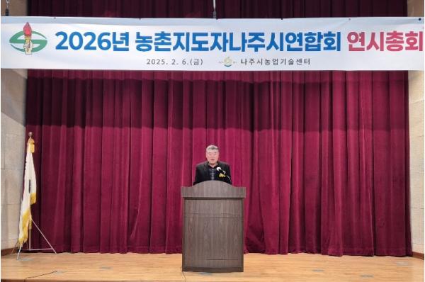 [중앙뉴스라인, 전은희기자] 전라남도의회 최명수 도의원(더불어민주당·나주2)은 6일 나주시 농업기술센터에서 열린 ‘나주시 농촌지도자 연시총회’에 참석해 나주 농업의 핵심 리더로서 헌신하고 있는 회원들을 격려하고, 지속 가능한 농촌 발전을 위한 지도자회의 역할을 강조했다.