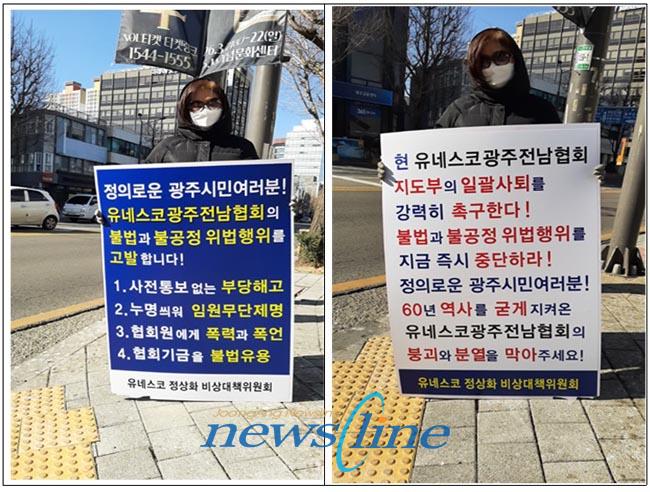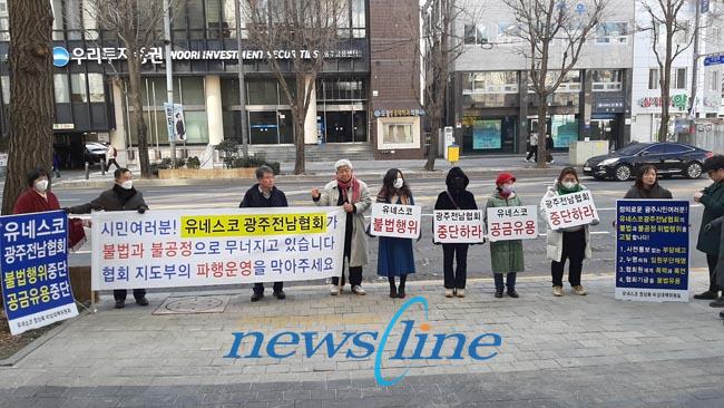 집회는 1월 23일부터 2월 6일까지 금남로4가 협회사무실 앞에서 이어졌으며 참가자들은 유네스코의 이념인 평화·관용·이해·인권을 내세우며 협회의 정상화를 요구했다.