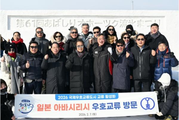 [중앙뉴스라인, 우제헌기자] 울산 남구는 7일 일본 홋카이도 아바시리시에서 열린 ‘제61회 아바시리 오호츠크 유빙축제’ 개막식에 공식 초청단으로 참석해 우호교류도시 간 협력 강화와 민간단체 교류 활성화에 나섰다.