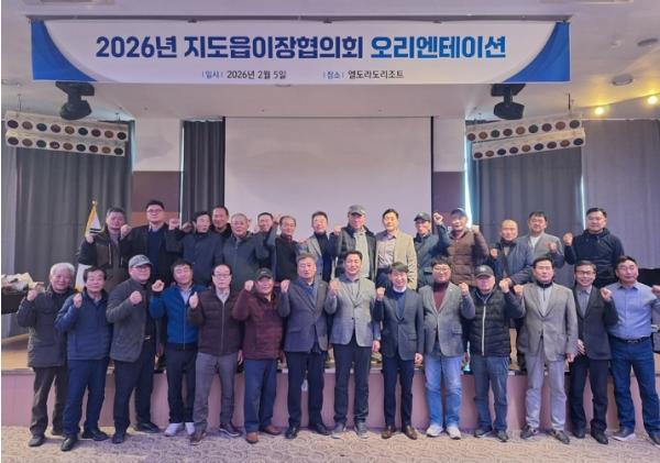 [중앙뉴스라인, 이상권기자] 신안군 지도읍 이장협의회(회장 홍은배)는 지난 2월 5일 증도 엘도라도리조트에서 지도읍 46개 마을 이장 전원이 참석한 가운데 ‘2026년 지도읍 이장협의회 오리엔테이션’을 열었다.