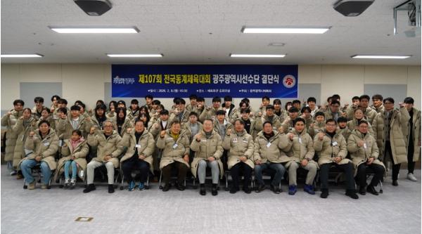 [중앙뉴스라인, 우제헌기자] 광주광역시체육회는 9일 오후 광주광역시체육회관 중회의실에서 제107회 전국동계체육대회에 출전하는 선수단의 선전을 기원하며 결의를 다지는 결단식을 개최했다.