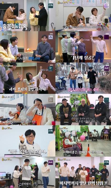 SBS ‘틈만 나면,’(연출 최보필/작가 채진아)은 일상 속 마주하는 잠깐의 틈새 시간 사이에 행운을 선물하는 '틈새 공략' 버라이어티. 지난 10일(화) 방송에서는 2MC 유재석, 유연석과 ‘틈 친구’ 코미디언 송은이, 김숙이 상암 SBS 스포츠 캐스터, 따릉이 정비팀과 배꼽 빠지는 케미스트리를 터트렸다.