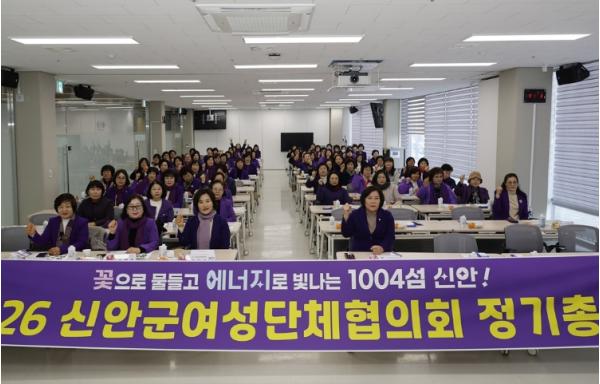 신안군여성단체협의회(회장 안미영)는 12일 신안군 가족센터 교류소통실에서 군 임원 및 14개 읍·면 임원·회원 100여 명이 참석한 가운데 2026년 정기총회를 개최했다.