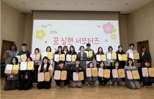‘2026. 꿈실현 서포터스’로 선발된 학생들은 지난해에 이어 1년간 ▲ 꿈실현금 100만 원 지원 ▲ 자신만의 도전 프로젝트 실행 ▲ 후배 멘토링 ▲ 우수사례 발표 ▲ 재단 홍보대사 활동 등 꿈실현 인생학교의 대표 학생으로서 역할을 수행하게 된다.