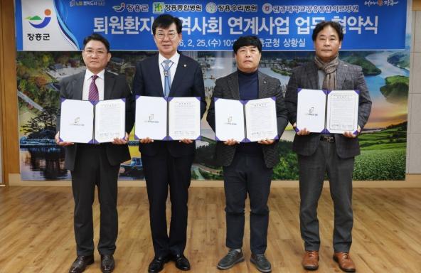 [중앙뉴스라인, 전은희기자] 장흥군은 지난 25일 군청 상황실에서 퇴원환자의 지역사회 안정적 복귀를 지원하기 위해 장흥종합병원, 장흥우리병원, 장흥통합의료병원과 '퇴원환자 지역사회 연계사업' 업무협약을 체결했다고 밝혔다.