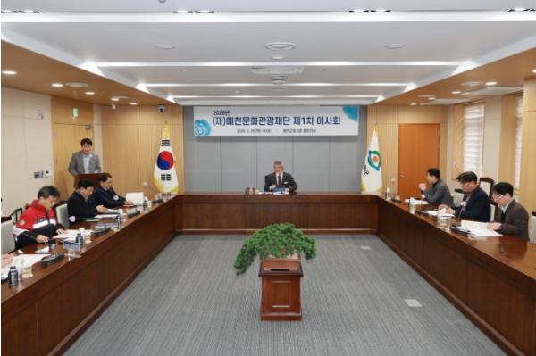 예천문화관광재단(이사장 김학동)은 26일 오후 2시 군청 중회의실에서 2026년도 제1차 이사회를 개최하고 2025회계연도 법인회계 결산, 제규정 개정, 2026년도 제1회 추가경정예산 등 총 3건의 안건을 심의·의결했다.
