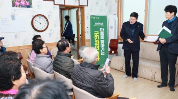 아울러 병원 동행 서비스 대상 확대, 기초생활보장수급자 급여 인상 및 선정 기준 완화, 농작업 대행 추진, 메타세쿼이아 입장료 페이백 정책 등 2026년부터 달라지는 주요 제도와 정책을 안내해 군민들의 호응을 얻었다.