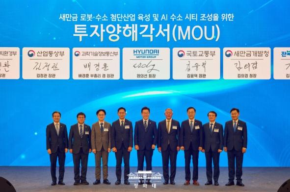 [중앙뉴스라인, 우제헌기자] 이재명 대통령은 27일 새만금 로봇·수소·AI 시티 투자 협약식에 참석해 "현대자동차그룹의 혁신 역량 그리고 풍부한 자원이 합쳐진다면 새만금은 최적의 시너지를 발휘하는 기회의 땅이 될 수 있을 것으로 믿는다"고 밝혔다.