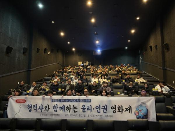 [중앙뉴스라인, 전영규기자] 제주삼다수를 생산·유통하는 제주특별자치도개발공사(사장 백경훈)는 지난 27일 메가박스 제주아라점에서 운송 협력사와 함께하는 ‘윤리·인권 영화제’를 개최했다.