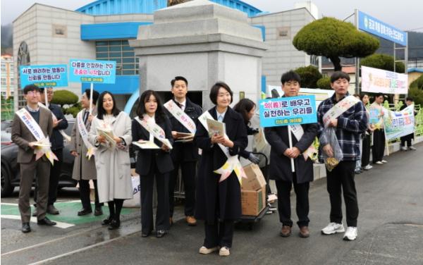 이날 행사에는 하숙자 교육장을 비롯해 교육지원청 관계자, 진도군청, 진도경찰서, 진도중학교 교직원, 학부모회와 진도중 학생자치회 학생 등이 참여해 등교하는 학생들에게 인사와 응원의 메시지를 전했다. 참가자들은 ‘서로 배려하는 행동이 신뢰를 만듭니다’, ‘다름을 인정하는 것이 존중의 시작입니다’라는 문구가 적힌 피켓 등을 활용하여 캠페인 활동을 펼쳤다.