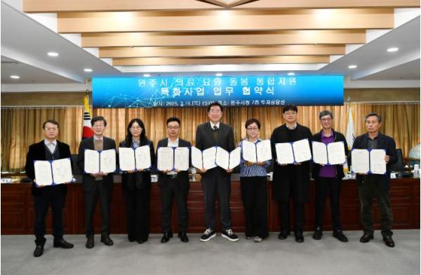 [중앙뉴스라인, 한소연기자] 원주시는 지난 19일 시청에서 ‘의료·요양·돌봄 통합지원’ 특화사업 추진을 위한 업무협약식을 개최했다.