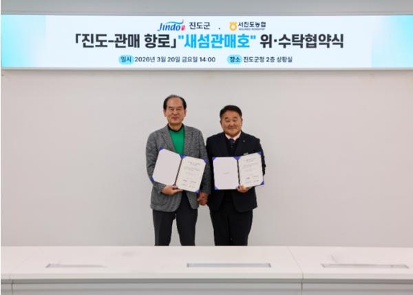 [중앙뉴스라인, 이상권기자] 진도군은 20일에 진도군청에서 서진도농협과 ‘진도~관매 새섬관매호’ 위수탁 협약식을 개최하고, 새섬관매호의 안정적이고 효율적인 운영을 위한 위수탁 협약을 체결했다.