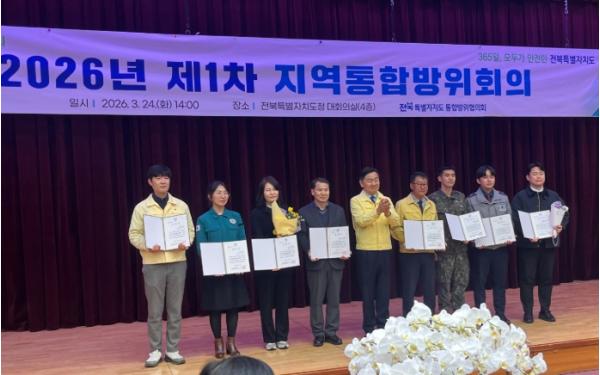 [중앙뉴스라인, 김용범기자] 군산시는 24일 전북특별자치도청에서 개최한 전북특별자치도 지역통합방위회의에서 지역 안보 태세 확립에 기여한 우수 기관으로 선정되어 ‘2025년 통합방위 유공’ 기관 표창을 받았다고 밝혔다.