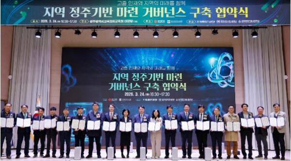 [중앙뉴스라인, 전은희기자] 광주시교육청과 광주시는 24일 광주AI교육원 대강당에서 이정선 광주시교육감, 김기숙 광주시 교육청년국장 등이 참석한 가운데 ‘고졸 인재와 지역의 미래를 함께, 지역 정주기반 마련 거버넌스 구축 협약식’을 개최했다.