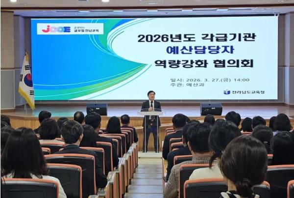 [중앙뉴스라인, 김민수기자] 전라남도교육청이 27일 전남교육청교육연구정보원에서 ‘2026년 예산업무 담당자 역량강화 협의회’를 열어, 상반기 신속집행 추진과 재정 운영 전략을 공유했다.