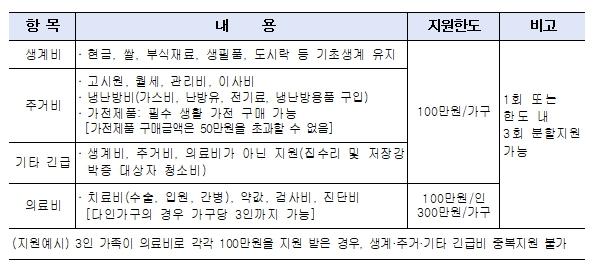 ‘취약계층 위기가구 지원사업’은 긴급복지지원 등 공적 지원을 받지 못한 위기가구에 생계비, 주거비 등 가구당 최대 100만 원까지 지원한다. 단, 의료비는 개인 기준으로 가구당 최대 3인까지 300만 원을 지원받을 수 있다.