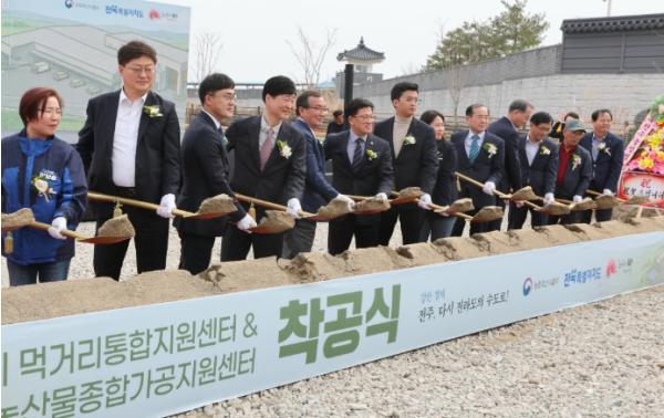 전주시는 3일 도도동 건립 부지에서 윤동욱 전주시장 권한대행 부시장과 전주시의원, 농업인 단체 및 유관기관 관계자, 지역주민 등 등 200여 명이 참석한 가운데 먹거리 선순환 체계 구축의 핵심 거점이 될 ‘전주시 먹거리통합지원센터’와 ‘전주시 농산물종합가공지원센터’의 공동 착공식을 가졌다.