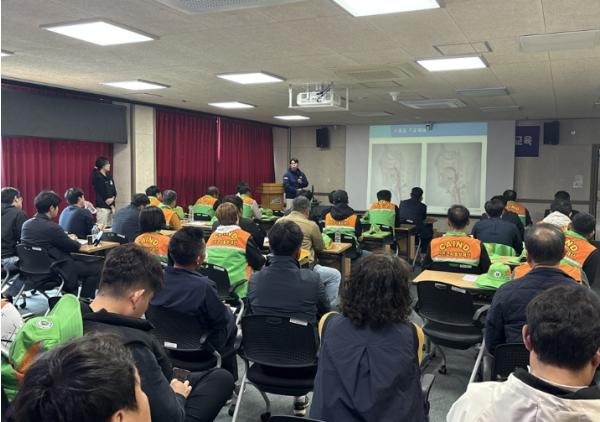 교육 1부에서는 유튜브 영상을 활용해 자율방재단의 주요 임무와 월별 활동 요령, 계절별 재난 유형에 따른 사전 대비 및 대응 방법을 교육했다.