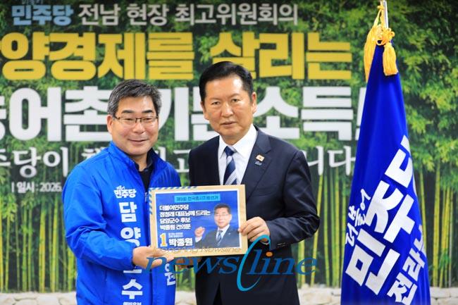 박종원 후보는 정청래 당 대표에게 담양의 전략적 가치를 극대화할 '6대 핵심 공약 건의문'을 전달하며 실무 행정가로서의 면모를 부각했다.