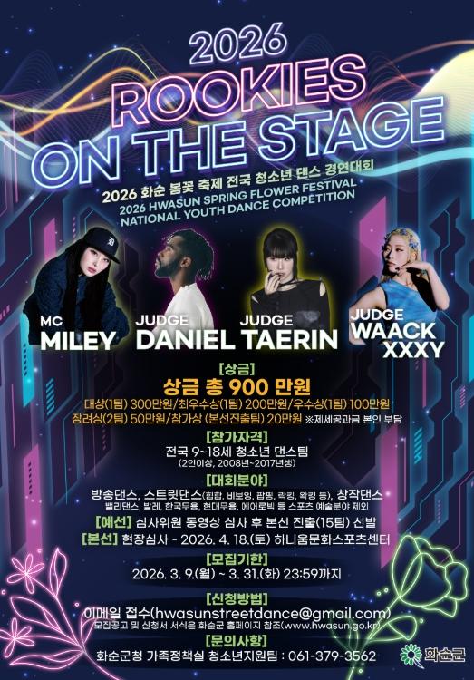 [중앙뉴스라인, 전은희기자] 화순군은 오는 4월 18일 '2026 화순 봄꽃 축제'의 화려한 시작을 알리는 ‘제3회 전국 청소년 댄스 경연 대회’ 본선을 개최한다고 밝혔다.