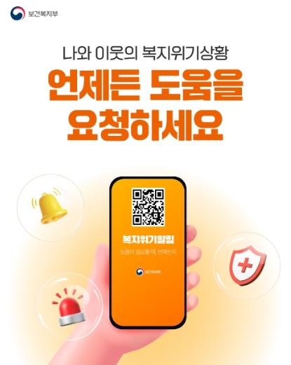 보건복지부는 경제적 어려움, 건강 문제, 고립·고독 등 본인과 이웃이 겪고 있는 복지위기 상황을 모바일로 신속하게 알릴 수 있는 ‘복지위기 알림 앱’을 운영하고 있다. 본인은 물론 이웃 등 누구든지 주변의 복지위기를 앱으로 알리면 관할 읍면동 주민센터에 즉시 배정된다. 이후 복지 담당 공무원의 확인과 상담을 거쳐 필요한 복지서비스를 제공하게 된다.
