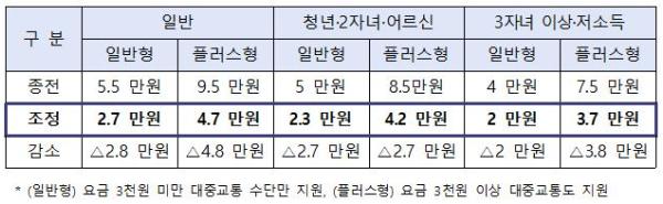 또 ‘모두의 카드’ 기준 금액이 절반 수준으로 낮아지면서 대중교통 이용이 잦은 시민의 혜택이 더욱 커진다.