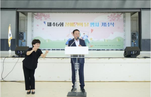 여주시 장애인단체연합회 주관으로 장애인과 가족, 기관·단체장 등 400 여명이 참석한 가운데 열린 기념식은 축하공연을 시작으로 유공자 표창 및 감사패 수여, 내빈 축사, 기념사진 순으로 진행됐다.