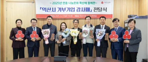 한편, 기탁된 성금은 전북사회복지공동모금회를 통해 익산 취약계층을 위한 △저소득 위기가정 생계비 지원 △의료비 지원 △청소년 희망나무 프로젝트 △고독사 예방을 위한 고립가구 지원 등 맞춤형 복지사업에 활용되고 있다.