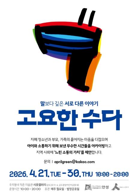 [중앙뉴스라인, 우제헌기자] 안성시 시옷갤러리는 오는 4월 21일부터 4월 30일까지 자폐 청소년과 그 가족이 함께 참여하는 전시 《고요한 수다》를 개최한다고 밝혔다.