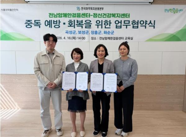 [중앙뉴스라인, 한소연기자] 화순군은 지난 16일 화순군정신건강복지센터가 전남함께한걸음센터와 지역사회 마약류 및 약물 오남용 예방과 회복 지원 강화를 위한 업무협약(MOU)을 체결했다고 밝혔다.