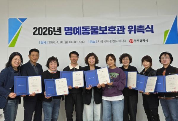 [중앙뉴스라인, 양병남기자] 광주광역시는 20일 시청 세미나실에서 성숙한 반려동물 문화 정착과 동물복지 증진을 위한 ‘2026년 명예동물보호관 위촉식’을 개최했다.