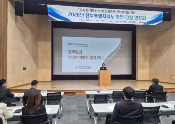 김진철 전북자치도 감사위원장은 “선거를 앞둔 시기일수록 공직자의 정치적 중립과 공정한 직무 수행이 무엇보다 중요하다”며 “도민의 신뢰를 지키기 위해 공직기강 확립에 최선을 다하겠다”고 밝혔다.