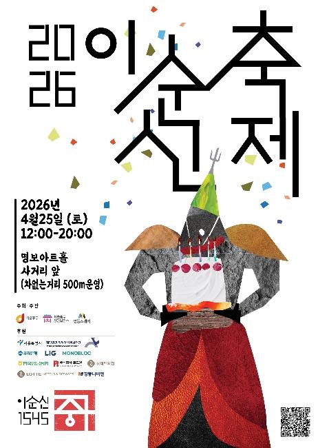 서울 중구는 오는 25일(토) 낮 12시부터 저녁 8시까지 충무공 이순신 생가터 인근 명보아트홀 사거리 일원에서 ‘2026 이순신 축제’를 개최한다. 지난해 첫 개최로 큰 호응을 얻고, 올해는 ‘이순신의 생일파티’콘셉트로 돌아왔다. 오는 28일은 충무공 이순신 탄신일 481주년이다.