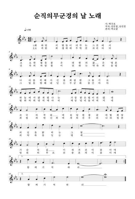 끝으로, 제1회 정부 기념행사를 개최하며 제작한 기념곡 ‘순직의무군경의 날 노래’를 가수 라포엠과 대학생연합합창단의 선도로 참석자 모두가 제창하며 기념식이 마무리된다.