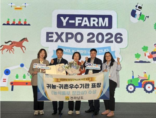 [중앙뉴스라인, 전은희기자] 전라남도는 24일 수원컨벤션센터에서 열린 ‘2026 와이팜 엑스포(Y-FARM EXPO)’에서 농림축산식품부의 농업인력육성시책 추진 유공자 표창에서 귀농어귀촌 우수시책 추진기관으로 선정돼 장관상을 받았다.