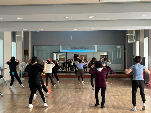 줌바댄스는 음악에 맞춰 춤을 추며 진행하는 전신 운동으로, 반복적인 동작과 리듬감 있는 안무로 인해 체지방 감소와 근력 강화에 효과적이다. 특히 초보자도 쉽게 따라 할 수 있어 운동 경험이 없는 주민들도 부담 없이 참여할 수 있다.