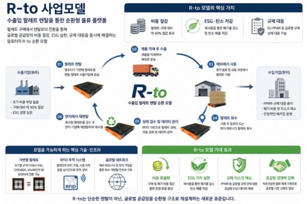 R-to 모델의 핵심은 ‘구매’에서 ‘렌탈’로의 전환이다. 기존에는 기업이 팔레트를 직접 구매해 단 한 번 사용하고 폐기했다면, R-to에서는 팔레트를 렌탈 형태로 공급받고, 사용 후에는 해외에서 회수된 팔레트를 현지 기업에 재공급하는 순환 구조를 형성한다. 이로써 팔레트는 일회성 비용이 아닌 반복적으로 활용되는 운영 자산으로 전환된다.