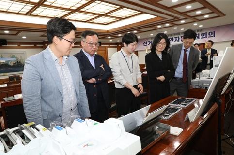 [중앙뉴스라인, 한성영기자] 중앙선거관리위원회는 4월 28일 오후 2시 중앙선관위 과천청사에서 제9회 전국동시지방선거 선거ICT 보안자문위원회 회의를 개최하고 투표지분류기 운영프로그램, 통합명부시스템 등의 보안체계를 확인·검증했다.