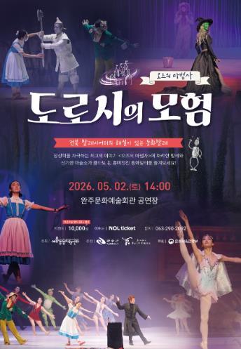 전북 발레시어터의 해설이 있는 동화 발레 '도로시의 모험'이 오는 5월2일 토요일 오후 2시, 완주문화예술회관에서 열린다.