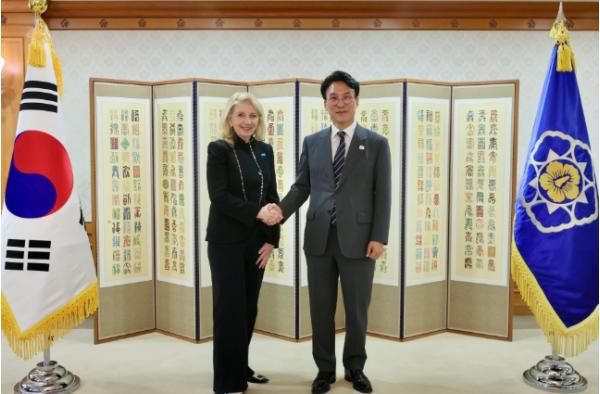 [중앙뉴스라인, 우제헌기자] 김민석 국무총리는 4월 28일 오후 정부서울청사에서 캐서린 러셀(Catherine Russell) 유엔아동기금(UNICEF) 총재를 접견하고 한-UNICEF 파트너십 강화 방안 등에 대한 의견을 교환했다.